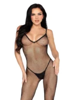 Seamless Heart Net Suspender Bodystocking Black O/S