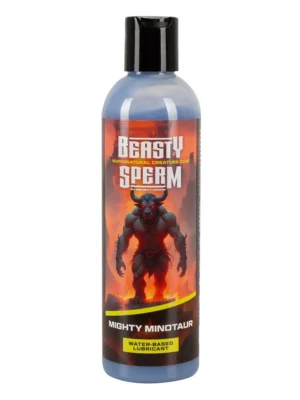 „Beasty Sperm Mighty Minotaur“ iš „Beasty Cocks“ – tai unikalus pilkšvai melsvos spalvos, tirštesnės konsistencijos lubrikantas, įkvėptas galingojo minotauro spermos.