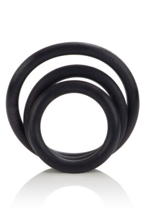 Rinkinys su 3 tampriais penio žiedais, kurie skiriasi dydžiu, iš Cal Exotics prekių ženklo. Pagaminti iš saugios kūnui, lanksčios TPR medžiagos, žiedai gali būti uždedami po vieną arba keli vienu metu. Naudokite aplink varpos šaknį, aplink kapšelį ar abu vienu metu – galimybės neribotos. Penio žiedai padeda išlaikyti tvirtesnę erekciją ir ilgiau mėgautis lytiniu aktu.