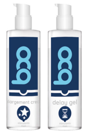 Jeigu norite ilgiau išlaikyti ištvermę, sustiprinti erekciją ir išvengti priešlaikinės ejakuliacijos, šis rinkinys su BOO Delay Gel ir Enlargement Cream gali atitikti jūsų poreikius.