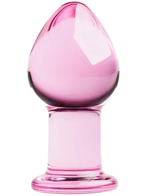 Išskirtinai elegantiškas stiklinis analinis kaištis su siaurėjančiu galu, palengvinančiu įskverbimą, platesniu korpusu, plona rankenėle ir apvaliu pagrindu.