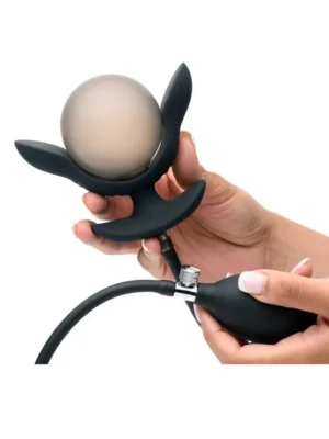 Pirmiausia suspauskite padalintą kaiščio galiuką, kad būtų lengviau įvesti. Atleidus, viduje išsiskleidžiantys sparneliai sukuria malonų spaudimą prostatai, G taškui ir kitoms analinėms erogeninėms zonoms. Tikrasis jaudulys prasideda, kai prijungiate pridedamą pompą ir pripučiate mažą sferą viduryje – pajusite augantį malonumą, kai kaištis pamažu plečiasi jumyse.