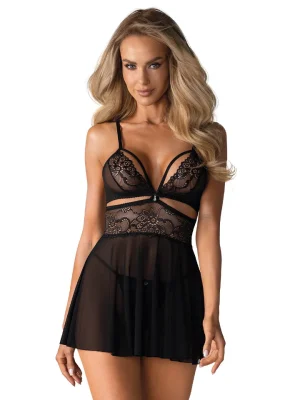 Vaizdo įrašas Obsessive 838-BAB Babydoll & Thong Black