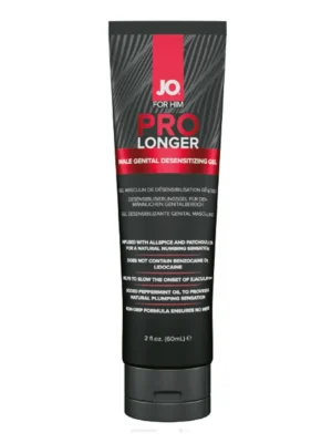 Maksimaliai sustiprinkite savo malonumą su Jo Prolonger Gel – geliu, kurio natūralūs nejautrą suteikiantys ingredientai gali padėti atitolinti ejakuliaciją ir taip pratęsti lytinį aktą. Jame yra pipirmėtės, kuri sustiprina uždelsiantį poveikį ir tuo pačiu suteikia sodrią pojūtį. Gelis pasižymi maloniu aromatu ir švelnia tekstūra. Puikiai tinka naudoti preliudijos metu arba asmeninėms intymioms akimirkoms.
